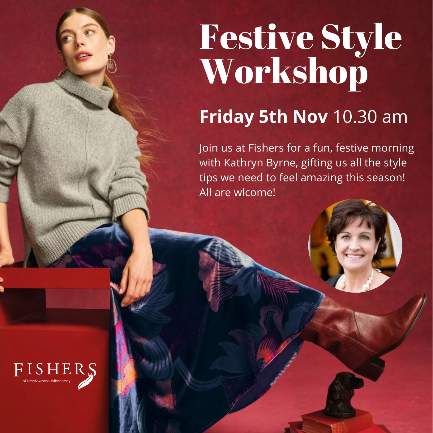 Join us for a fabulous morning with stylist Kathryn Byrne for all your Festive style tips. We will be looking at what works for you! Your colour, your shape and your personal style!